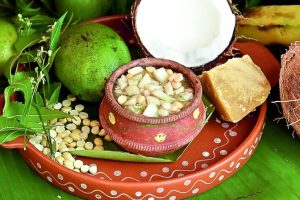 सामग्री: उगादी पचड़ी बनाने के लिए एक कप गुड़, थोड़ी इमली, एक कप कच्चा आम, 1 संतरा, लाल मिर्च पाउडर, हरी मिर्ची, नमक, नीम का पाउडर या नीम के फूल, पका केला, दालचीनी, घिसा हुआ नारियल, किशमिश और पानी की जरूरत होगी।