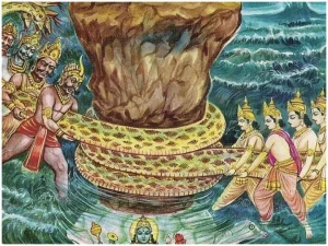 - उनका शुक्र स्खलित हुआ, जिससे एक काले रंग के दैत्य की उत्पत्ति हुई।
